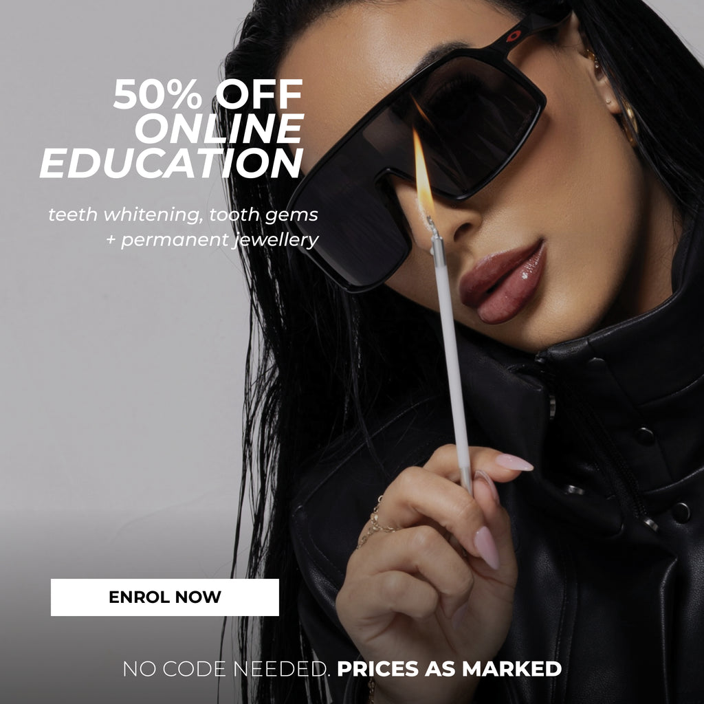 Today, Sparkle By Maya has become a globally recognised name, synonymous with quality, innovation, and education. Maya’s signature methods and training programs have gained international acclaim as she travels worldwide teaching her sought after techniques. Proudly, Sparkle By Maya remains Australia’s first and largest combined supplier and training academy for Teeth Whitening, Tooth Gems, and Permanent Jewellery, continuing to lead the industry with passion, precision, and authenticity.