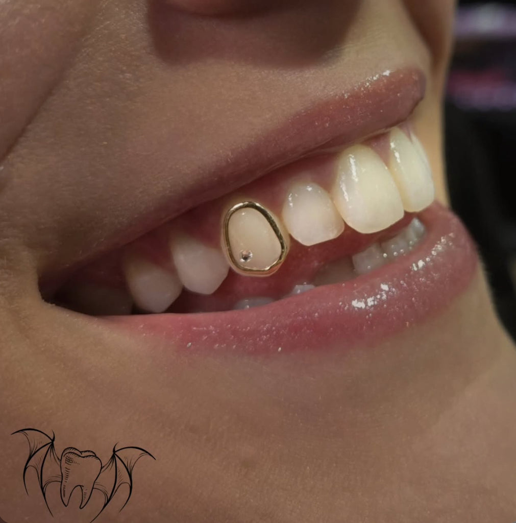 Sparkle By Maya's intricate 18k Gold Tooth Charms feature a flat back surface & do not discolour or tarnish the teeth. They are easy to attach & bond safely to the teeth with our 3 x Essential Adhesives.